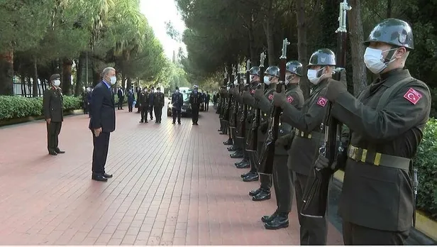 Ege Ordusu Komutanı Orgeneral Ali Sivri tarafından karşılanan Bakan Akar, tören kıtasını selamladı, şeref defterini imzaladı.