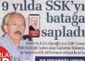"Dokuz yılda SSK'yı batağa sapladı": 1999'da Kılıçdaroğlu'nu SSK Genel Müdürlüğü'nden alan Çalışma Bakanlığı, başarısızlık tablosunu ortaya koydu. 1991'de SSK Genel Müdürü olan Kılıçdaroğlu, 128 bin kârla aldığı kurumu ertesi sene zarara geçirdi.