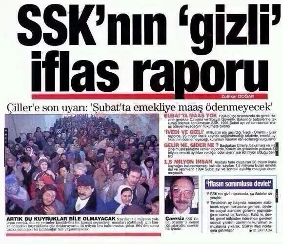Yansın tabii, hepimiz konuşuyoruz da kendisini çare olarak sunan Kılıçdaroğlu'nun şimdiye dek yönettiği tek devlet kurumunu iflas ettirdiğini de unutamıyoruz. Ülke ekonomisinin kendisine emanet edilmesini talep eden Kılıçdaroğlu'nun SSK müdürü olduğu dönemden bahsediyorum. Bazı gazete başlıklarını aktarıyorum." ifadelerine yer verdi, okurlarına şu hatırlatmalarda bulundu: