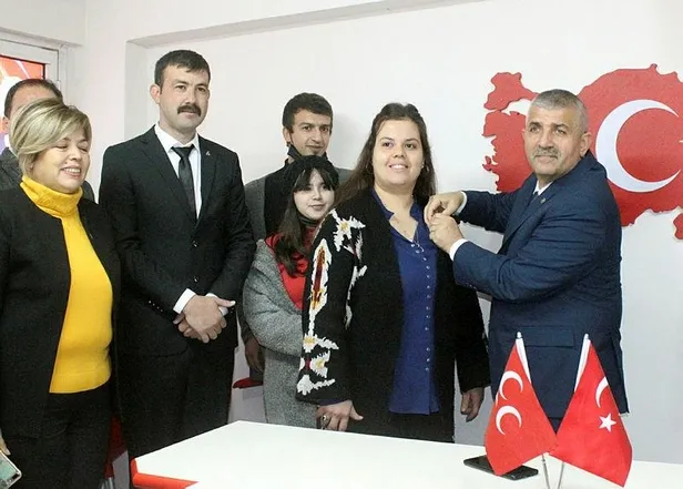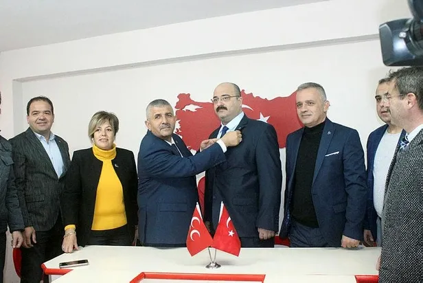 Konuşmanın ardından MHP'ye katılanlara rozetleri, İl Başkanı Şahin tarafından takıldı.