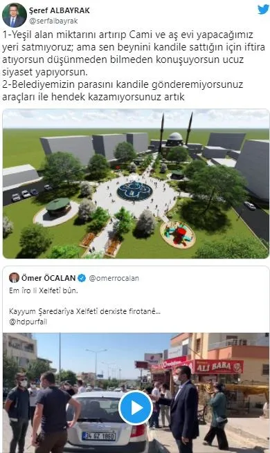 "1-Yeşil alan miktarını artırıp Cami ve aşevi yapacağımız yeri satmıyoruz; ama sen beynini Kandil'e sattığın için iftira atıyorsun düşünmeden bilmeden konuşuyorsun ucuz siyaset yapıyorsun.