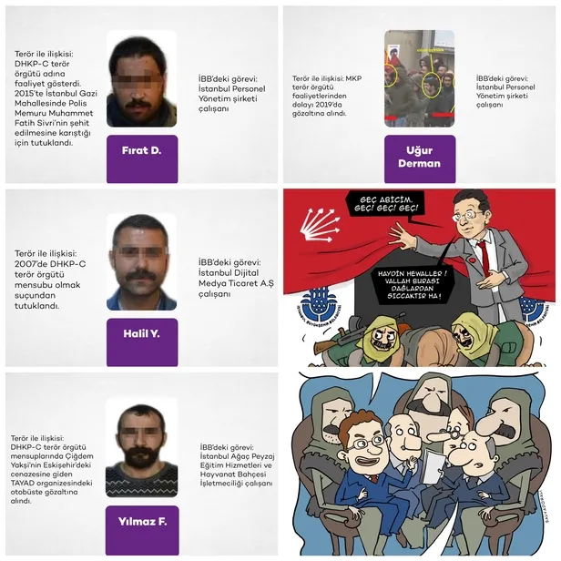 CHP'li İBB Başkanı Ekrem İmamoğlu, belediyeyi adeta terör yuvası haline getirdi. Birkaç gündür ortaya çıkan belgeler ile İBB'nin terörist kadrosu da gözler önüne serildi. İBB ve bağlı şirketlerinde görevli DHKP-C üyeleri arasında polis Muhammet Fatih Sivri'nin şehit edildiği gösterilerde tutuklananlar olduğu da gündeme bomba gibi düştü.