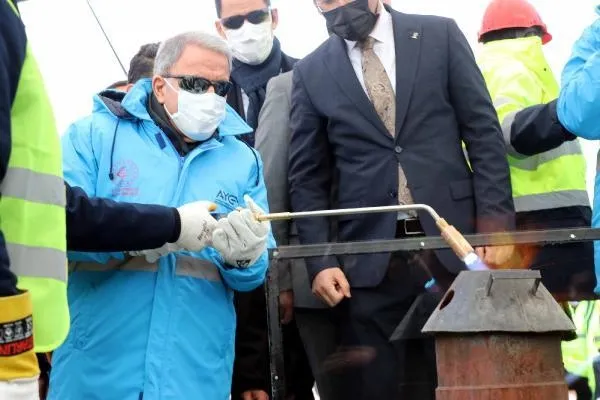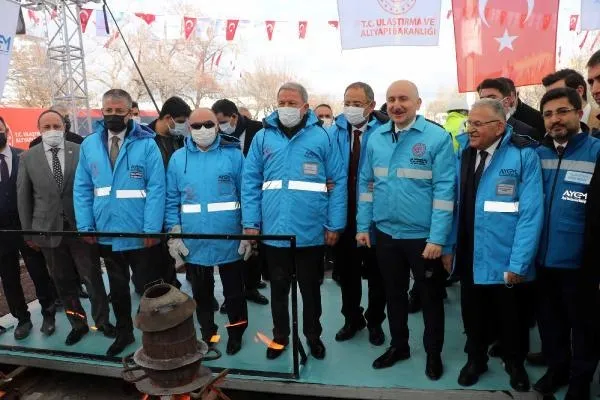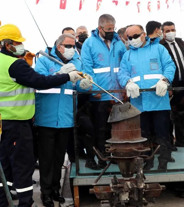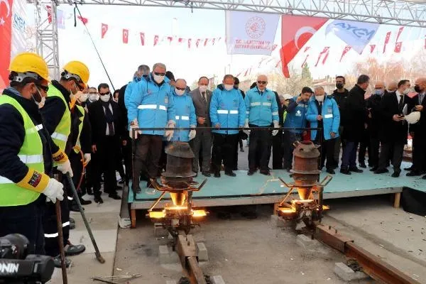 Ulaştırma ve Altyapı Bakanı Adil Karaismailoğlu ile Milli Savunma Bakanı Hulusi Akar, tramvay hattı ilk ray kaynak törenine katıldı