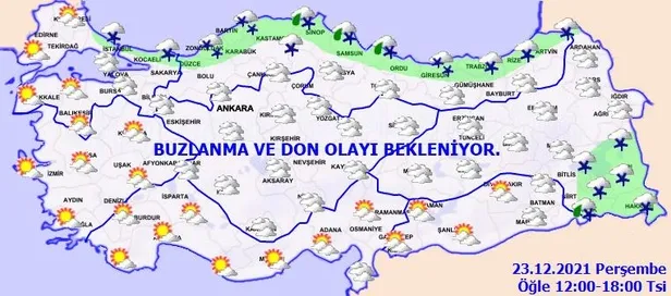İç ve doğu kesimlerde buzlanma ve don olayı ile birlikte pus ve sis bekleniyor. Hava sıcaklığında önemli bir değişiklik olmayacağı, ülkemiz genelinde mevsim normallerinin altında seyredeceği tahmin ediliyor.