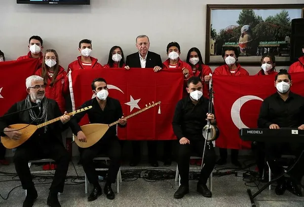 Erdoğan, havalimanında sanatçıların seslendirdiği eserleri dinledi.
