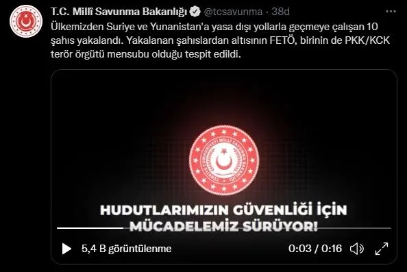 MSB'den yapılan açıklamada, "Ülkemizden Suriye ve Yunanistan'a yasa dışı yollarla geçmeye çalışan 10 şahıs yakalandı. Yakalanan şahıslardan 6'sının FETÖ, birinin de PKK/KCK terör örgütü mensubu olduğu tespit edildi." bilgisine yer verildi.