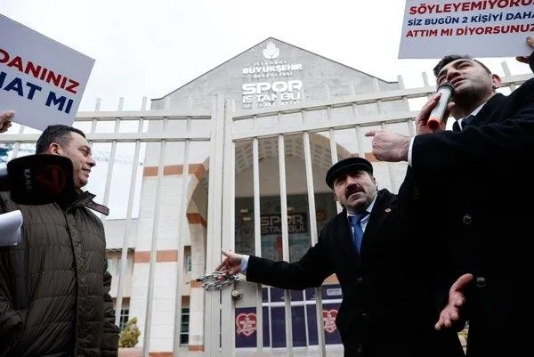 Fatih'teki Spor İstanbul Genel Müdürlüğü önünde bir araya gelen bir grup işçi, "Haksızlığa dur diyoruz. Haksız yere CHP'li İstanbul Büyükşehir Belediyesi tarafından işten atılanlar platformu" yazılı pankart açtı. İşçiler, Spor İstanbul binasının demir kapısına zincir vurup kilitleyen İBB yetkililerine de tepki gösterdi.