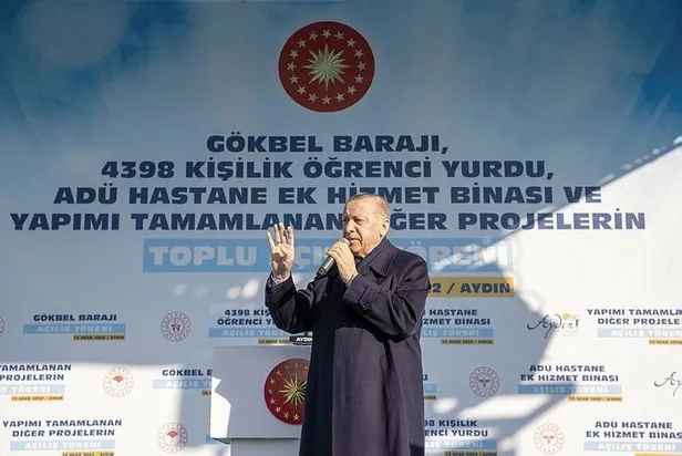 Son dakika... Aydın'da bulunan Başkan Recep Tayyip Erdoğan, Gökbel Barajı, 4398 Kişilik Öğrenci Yurdu, ADÜ Hastane Ek Hizmet Binası ve yapımı tamamlanan diğer projelerin toplu açılış töreninde konuştu.