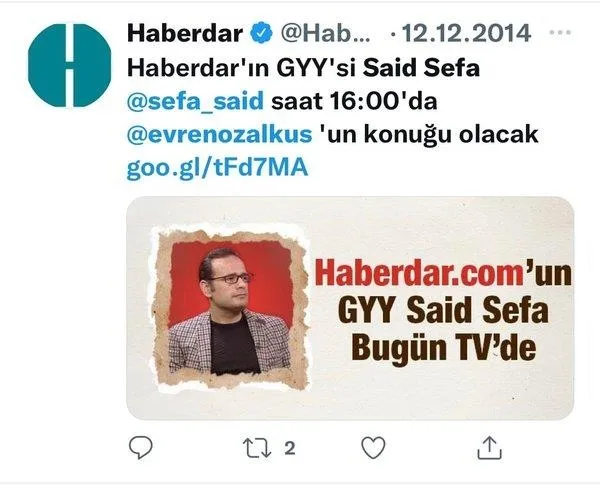 Muhalif yayın yaptıkları iddiasıyla her gün ekranlarda yalan yanlış iftiralarla algı operasyonu yapan Tele1'de FETÖ skandalı… Kanalın ana haber spikeri Evren Özalkuş'un, FETÖ'nün eski ekran yüzü olduğu ortaya çıktı.