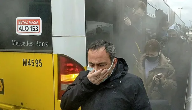 İçeriye duman dolması üzerine aracı durağa yanaştıran sürücü, yolcuları indirdi.
