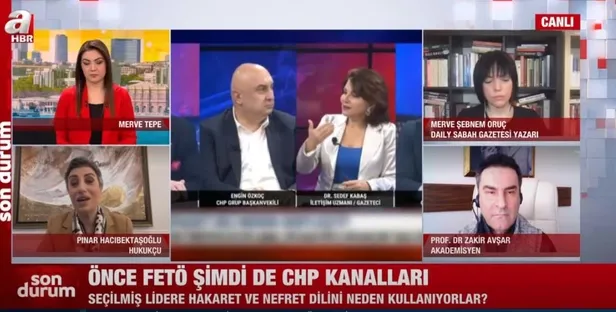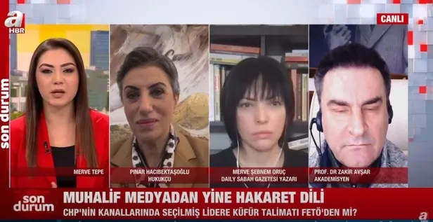 Önce FETÖ kanallarında sonra da CHP kanallarındaki hakaret dilinin altında neler var? A Haber yanında Daily Sabah Gazetesi Yazarı Merve Şebnem Oruç, "Çocuklar namaz kılıyor diye kıyametleri koparan, cami önünde ayakkabı arayan bir medya vardı. Bugün örneğini gördüğümüz ise TELE 1. Hakaret dilini kullananlar 'biz mağduruz' diyorlar.