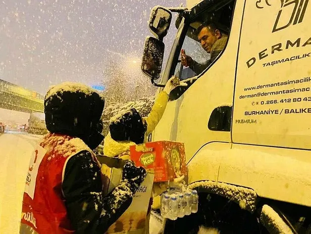 Türk Kızılay ekipleri, İstanbul'da etkili olan kar yağışından etkilenenlere gıda ve yardım malzemeleriyle destek oldu.