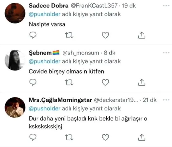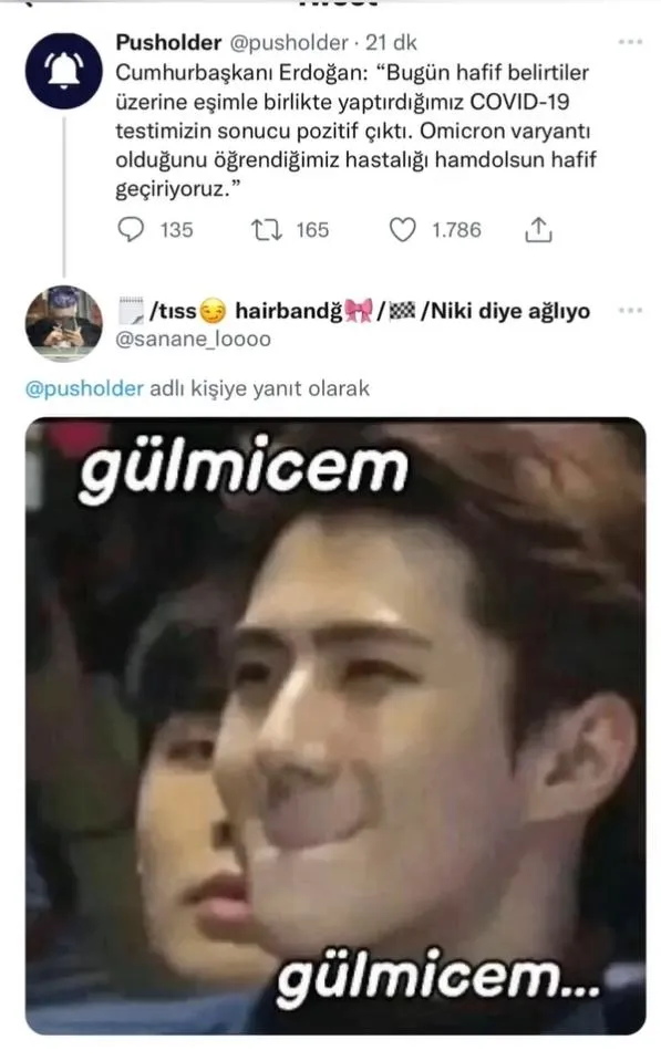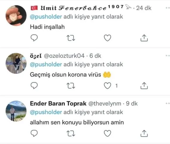 Başkan Recep Tayyip Erdoğan, Twitter hesabından Kovid-19 testinin pozitif çıktığını duyurdu. Erdoğan'a parti gözetmeksizin gerek siyasilerden gerekse birçok vatandaştan geçmiş olsun mesajı yağdı. Bir yandan iyi dilekler birbiri ardına gelirken bir yandan da sosyal medya çöplüğünün trolleri de boş durmadı. Başta Pucca olmak üzere Erdoğan ve Türkiye düşmanı bazı hesaplar; Başkan Erdoğan'ın Covid'e yakalanmasına sevinerek aşağılık paylaşımlarda bulundu.