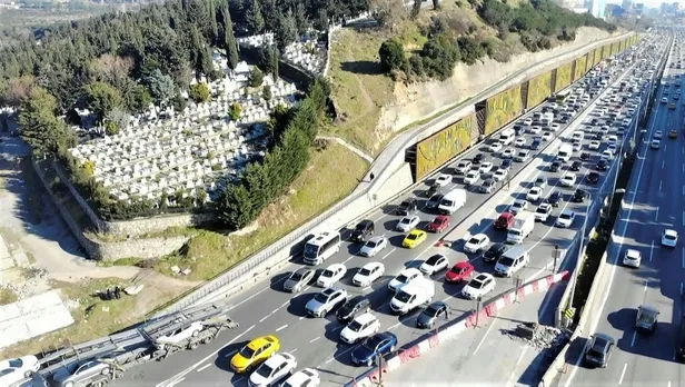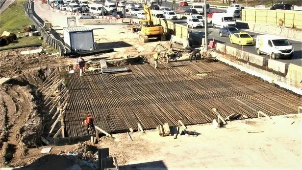 Öte yandan, çalışmaların sürdüğü şantiye alanı ve gerisinde bıraktığı yoğun trafik havadan görüntülendi.