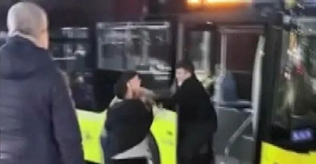 Araçtan inen İETT otobüsü şoförü ile otomobil sürücüsü çevredekilerin şaşkın bakışları arasında tekme tokat kavga etti.