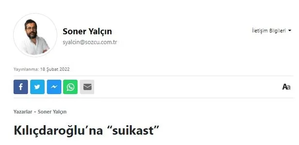2023 yarışında İmamoğlu'nun tarafını seçen Soner Yalçın, CHP lideri Kemal Kılıçdaroğlu'nun itibarını sıfırlamak için de düğmeye bastı. İmamoğlu ile kulis yemeği yiyen, kampanya süreci ve stratejilerini konuşan, köşe yazılarından İmamoğlu reklamlı eksik olmayan Soner Yalçın, bugünkü köşesinde Kılıçdaroğlu'nun kampanya ekibine vurdukça vurdu.