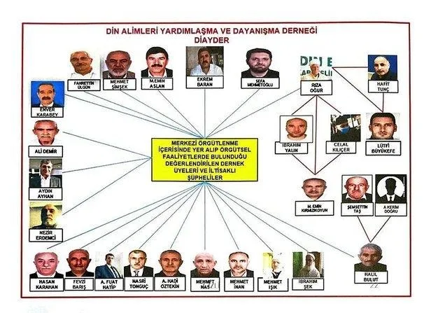 Davanın iddianamesinde, 2008 yılında elebaşı Abdullah Öcalan'ın talimatıyla kurulan DİAYDER'in amacının, Kürt vatandaşların dini inanç ve duygularını sömürüp terör örgütüne sempati duymalarını sağlamak olduğu belirtiliyor. Sözde din adamı görünümlü örgüt üyelerince vaazlar verildiği vurgulanan iddianamede, bazı vaazlara Kandil'den gelen örgüt yöneticilerinin de katıldığı belirtildi.