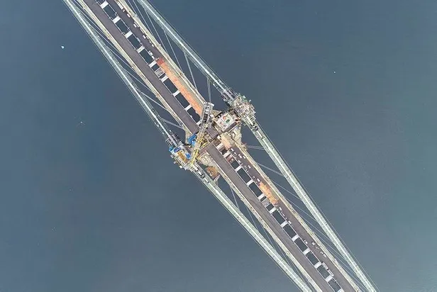 Avrupa tarafında 45, Anadolu tarafında 35 metre toplamda suyun altında 84 metre yükseklik var. Toplamda 400 metrenin üzerine çıkıyor aslında. Kedi yolu var. Orada da yürümüştük. 162 bin km çelik tel uzunluğu, dünyayı 4 kez dolaşabiliyorsunuz. Kedi yolu çalışma için yapılmıştı, kaldırılacak.
