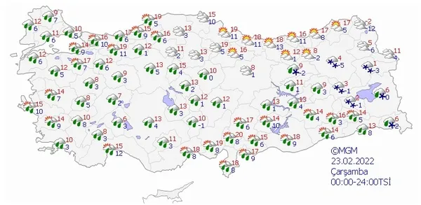 23 ŞUBAT 2022 ÇARŞAMBA HAVA DURUMU