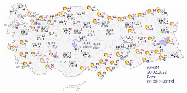 20 ŞUBAT 2022 PAZAR HAVA DURUMU