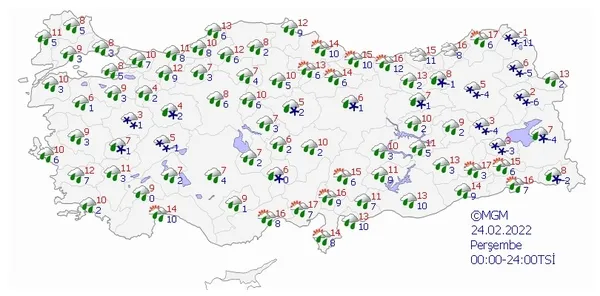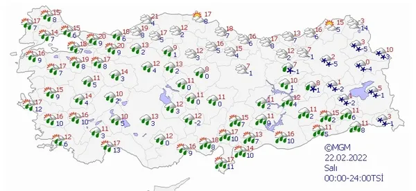 22 ŞUBAT 2022 SALI HAVA DURUMU