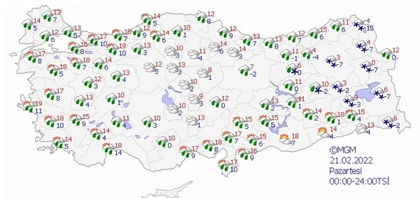 21 ŞUBAT 2022 PAZARTESİ HAVA DURUMU