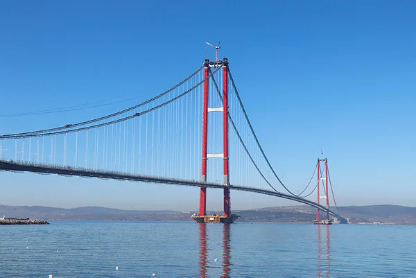 Kulelerin kırmızı beyaz rengi ise al bayrağımızı temsil etmektedir. 2023 metrelik orta açıklığı ile dünyanın en uzun orta açıklıklı asma köprüsüdür. Deniz seviyesinden yüksekliği, Seyit Onbaşı'nın sırtında taşıdığı, savaşın kaderini değiştiren 16 metrelik top mermisinin figürüyle 334 metreye ulaşan kule yüksekliği ile köprümüz, dünyanın en yüksek kulelerine sahip asma köprüsü olacaktır."