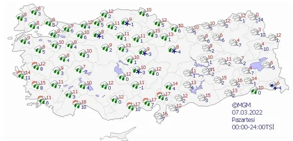 7 MART 2022 PAZARTESİ HAVA DURUMU