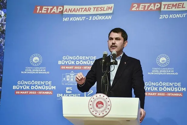 Murat Kurum, İstanbul'da sadece sağlıksız yapı stokunu yenilemediklerini, yeni konut ve mekanlar inşa etmenin yanında, içerisinde camisi, millet bahçesi, yürüyüş yolları, kıraathaneleri, mesire alanları ve pek çok sosyal donatıyı içinde barındıran projeler yaptıklarını aktardı. İstanbul'a 46 millet bahçesi kazandırdıklarını kaydeden Kurum, Güngören'e de toplam büyüklüğü 56 bin metrekareye ulaşan 2 millet bahçesi yaptıklarını bildirdi. Şehrin merkezinde tapu, mülkiyet sorunu olan, kentsel dönüşümü bekleyen tüm alanlara ilişkin istişareleri yaptıklarını belirten Kurum, Güngören'deki sağlıksız yapı sorununu da bir an önce ortadan kaldıracaklarını vurguladı.