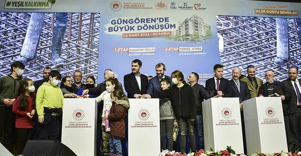 Çevre, Şehircilik ve İklim Değişikliği Bakanı Murat Kurum, Güngören Belediyesi Gençosman Kültür Merkezi'nde düzenlenen Tozkoparan Kentsel Dönüşüm Projesi Temel Atma ve Anahtar Teslim Töreni'nde konuştu. Kurum, "İstanbul'un deprem dönüşümünün sümen altı edilmesine, rafa kaldırılmasına kimsenin bu sürece balta vurmasına milletimiz adına asla ve asla müsaade etmedik, bundan sonra da etmeyeceğiz." dedi.