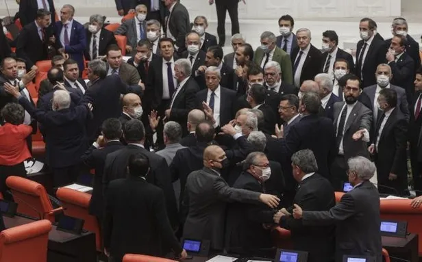 TBMM'de CHP'li ve MHP'li vekiller birbirlerine girdi yumruklar havada uçuştu!