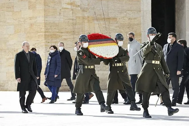 Anıtkabir merdivenlerinde hatıra fotoğrafı çektiren Scholz, Anıtkabir Özel Defteri'ni imzalayarak, "Modern Türkiye'nin kurucusu büyük Avrupalı devlet adamı Mustafa Kemal Atatürk'e derin saygıyla. Bu gibi zor dönemlerde Türk ve Alman halkları arasındaki bağlılık özel bir değere sahip" yazdı.