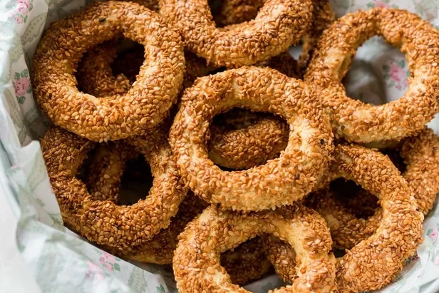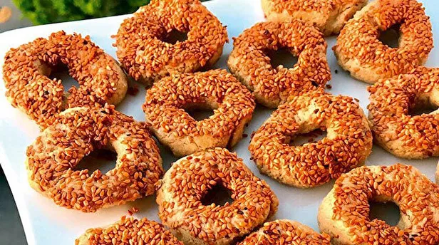 Kulak memesi kıvamına gelindiğinde ceviz büyüklüğünde hamur alınır elle açılıp çay bardağı ile kesilir ortasını da şişe kapağı ile keseriz ardından yumurta beyazına ve susama bularız 180 derece de 20 dakika pişiririz. Afiyet olsun..