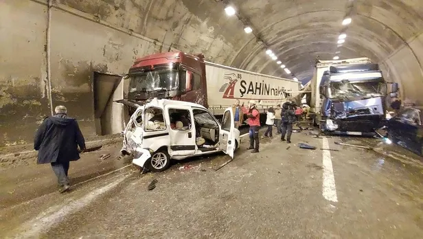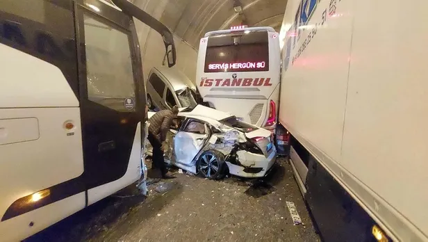 Bolu Dağı Tüneli'nin içinde aralarında tır, kamyon ve otobüsün de olduğu çok sayıda aracın karıştığı zincirleme trafik kazası meydana geldi.