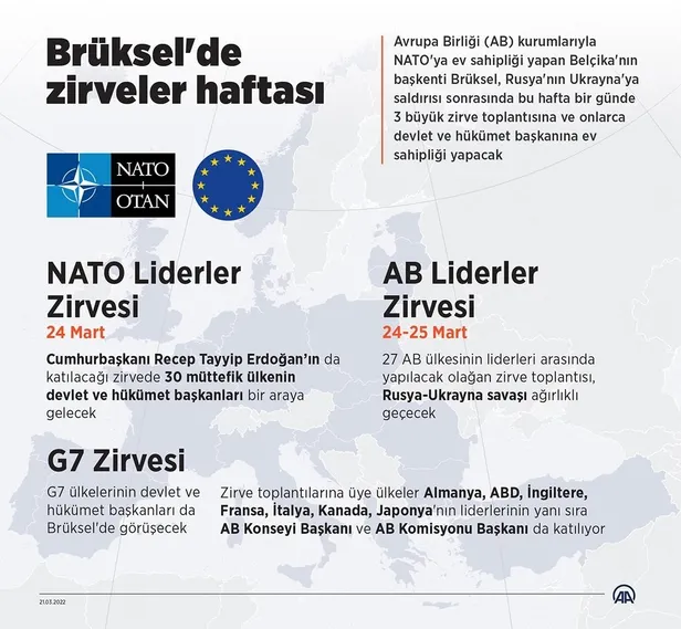 Başkan Recep Tayyip Erdoğan, Brüksel'de düzenlenecek NATO Olağanüstü Devlet ve Hükümet Başkanları Zirvesi'ne katılmak üzere 23-24 Mart'ta Belçika'ya ziyarette bulunacak.