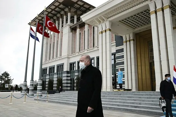 Başkan Erdoğan, Rutte'yi Cumhurbaşkanlığı Külliyesi'nin ana giriş kapısında karşıladı.