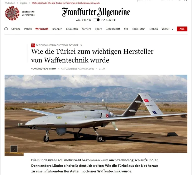 Türk SİHA'larının savunma sanayide dünyadaki birçok ülkeyi geride bıraktığına dikkat çekilen haberde, Alman ordusunun teknolojiyi yakalamak için daha fazla para alacağı belirtildi.