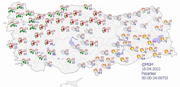 18 NİSAN 2022 PAZARTESİ HAVA DURUMU