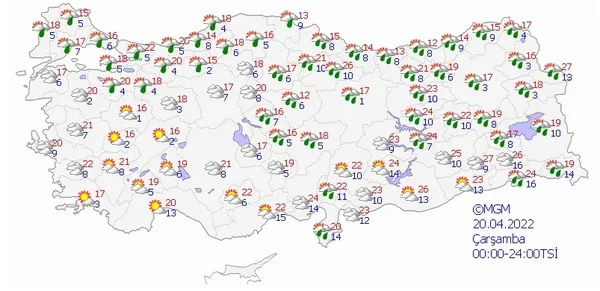 20 NİSAN 2022 ÇARŞAMBA HAVA DURUMU