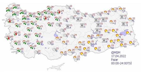 17 NİSAN 2022 PAZAR HAVA DURUMU