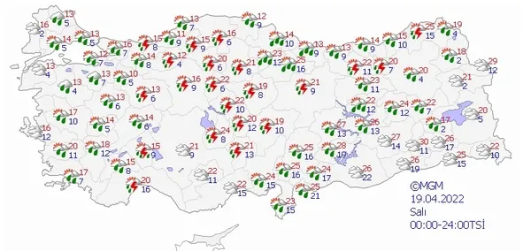 19 NİSAN 2022 SALI HAVA DURUMU