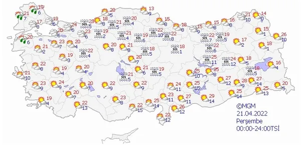 21 NİSAN 2022 PERŞEMBE HAVA DURUMU