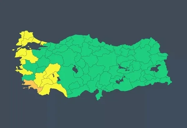 Meteoroloji, İstanbul, Kırklareli, Edirne, Tekirdağ, Balıkesir, Çanakkale, İzmir, Afyonkarahisar, Denizli, Isparta, Burdur ve Antalya için sarı, Muğla için ise turuncu uyarıda bulundu.