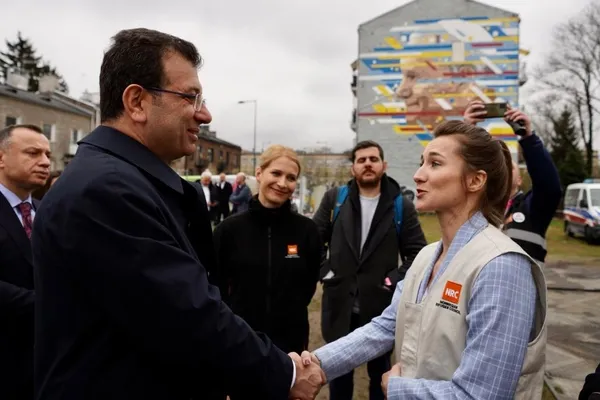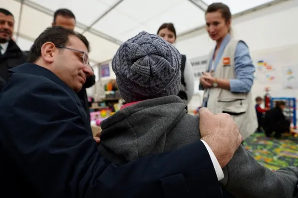 İstanbul Büyükşehir Belediye Başkanı Ekrem İmamoğlu, Polonya'nın başkenti Varşova'da kurulan geçici kabul merkezinde Ukrayna'yı terk etmek zorunda kalan savaş mağdurlarını ziyarete gitti.