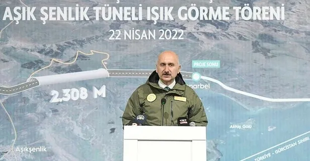 Ardahan'da Gürcistan ile ulaşımı sağlayacak olan Aşık Şenlik Tüneli'nde Işık Görme töreni gerçekleştirildi. Törende konuşan Ulaştırma ve Altyapı Bakanı Adil Karaismailoğlu, "Bedeli 659 milyon 320 bin lira olan projemizle güzergah 4 kilometre daha kısalacak. Zamandan 2,2 milyon lira, akaryakıttan da 2,2 milyon lira olmak üzere, bir yılda 4,4 milyon liralık tasarruf sağlayacağız." dedi.
