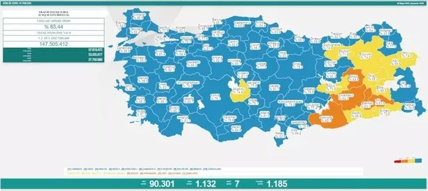 18 yaş üstü nüfusta ikinci doz aşı uygulananların oranı yüzde 85,44, birinci doz aşı yapılanların oranı yüzde 93,15 olarak kayıtlara geçti. Türkiye'de bugüne kadar uygulanan aşı miktarı 147 milyon 499 bin 821 doza yükseldi.
