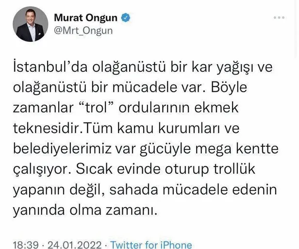 Öte yandan İstanbul Büyükşehir Belediyesi Basın Danışmanı Murat Ongun, İstanbul'da kar esareti yaşanırken yaptığı İsviçre ve Milano tatilinin hesabını da veremedi.
