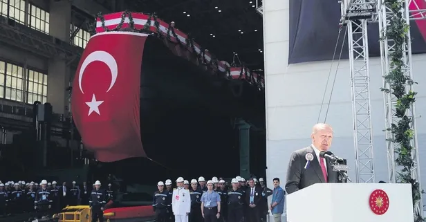 Başkan Erdoğan, Gölcük Tersanesi'nde Hızır Reis Denizaltısı'nın havuza çekilme törenine katıldı.