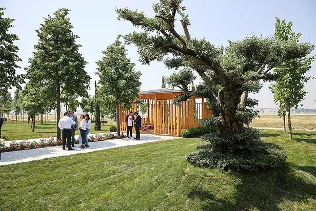 Çevre Şehircilik ve İklim Değişikliği Bakanı Murat Kurum; Atatürk Havalimanı Millet Bahçesi'nde medeniyetimizin simgesi olan çınar ağacından İstanbul'un simgesi olan ıhlamurlara kadar 16 tür ağacı gençlerle diktiklerini söyledi. Murat Kurum, "Bu alanda, şehitlerimizin ölümsüzlüğünü simgeleyen, işte hemen arkamdaki 350 yaşındaki zeytin ağacımızı da toprakla buluşturduk" dedi.