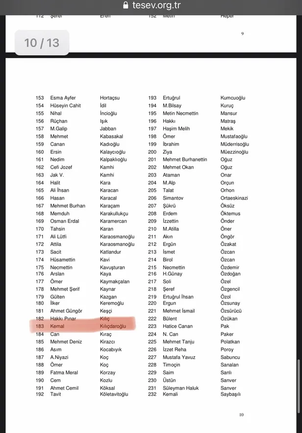 KILIÇDAROĞLU TESEV'İN 183 NUMARALI KURUCU ÜYESİ